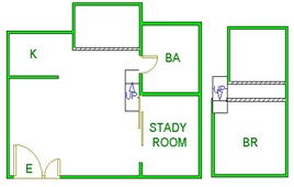 ▲ E(入口)=entrance BR (洋室)=Bedroom BA (浴室)=Bathroom