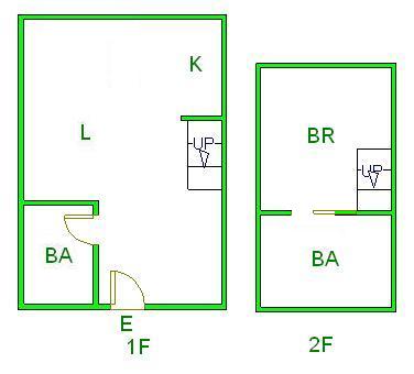 ▲ E(入口)=entrance BR (洋室)=Bedroom BA (浴室)=Bathroom