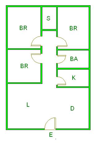 ▲ E(入口)=entrance BR (洋室)=Bedroom BA (浴室)=Bathroom