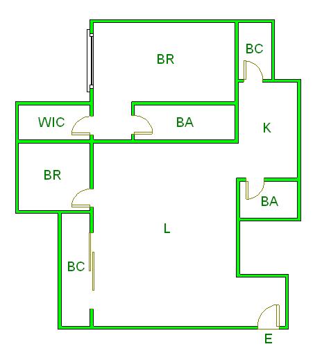▲ E(入口)=entrance BR (洋室)=Bedroom BA (浴室)=Bathroom