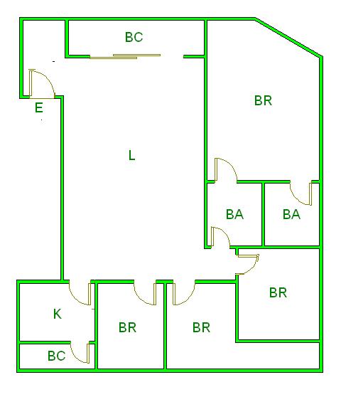 ▲ E(入口)=entrance BR (洋室)=Bedroom BA (浴室)=Bathroom