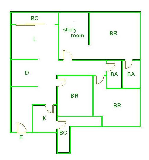 ▲ E(入口)=entrance BR (洋室)=Bedroom BA (浴室)=Bathroom