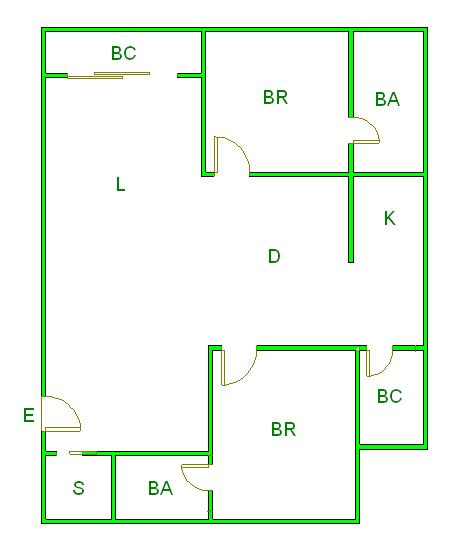 ▲ E(入口)=entrance BR (洋室)=Bedroom BA (浴室)=Bathroom