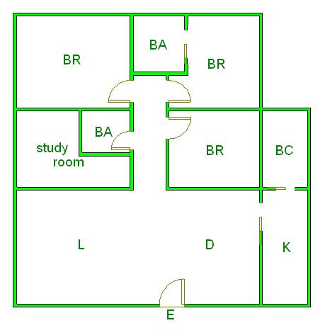 ▲ E(入口)=entrance BR (洋室)=Bedroom BA (浴室)=Bathroom