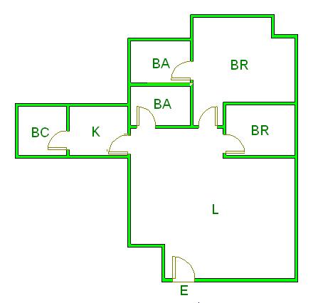 ▲ E(入口)=entrance BR (洋室)=Bedroom BA (浴室)=Bathroom