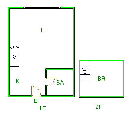 ▲ E(入口)=entrance BR (洋室)=Bedroom BA (浴室)=Bathroom