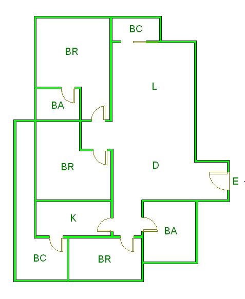 ▲ E(入口)=entrance BR (洋室)=Bedroom BA (浴室)=Bathroom