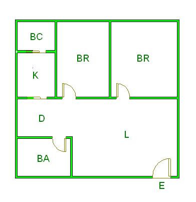 ▲ E(入口)=entrance BR (洋室)=Bedroom BA (浴室)=Bathroom