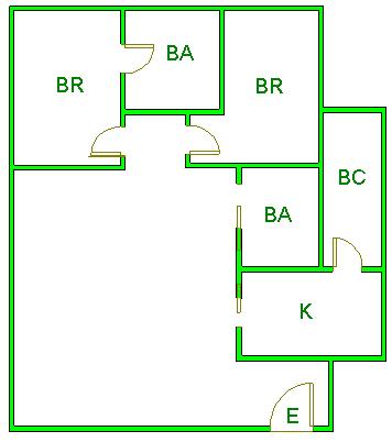 ▲ E(入口)=entrance BR (洋室)=Bedroom BA (浴室)=Bathroom