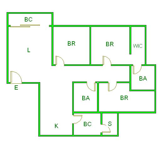 ▲ E(入口)=entrance BR (洋室)=Bedroom BA (浴室)=Bathroom