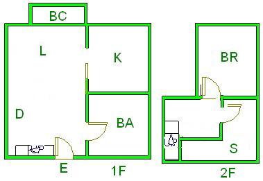 BC (ベランダ)=Balcony JR (和室)=Japaneseroom K (台所)=Kitchen