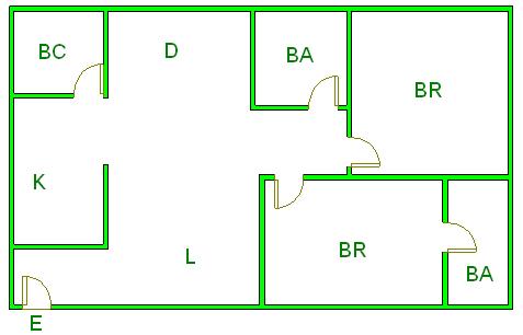 ▲ E(入口)=entrance BR (洋室)=Bedroom BA (浴室)=Bathroom