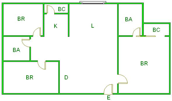 ▲ E(入口)=entrance BR (洋室)=Bedroom BA (浴室)=Bathroom