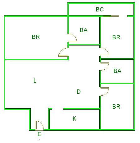 ▲ E(入口)=entrance BR (洋室)=Bedroom BA (浴室)=Bathroom