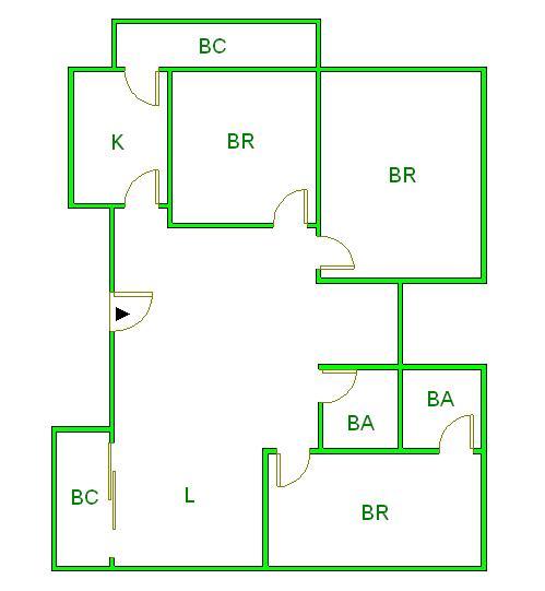 ▲ E(入口)=entrance BR (洋室)=Bedroom BA (浴室)=Bathroom