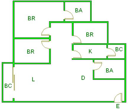 ▲ E(入口)=entrance BR (洋室)=Bedroom BA (浴室)=Bathroom