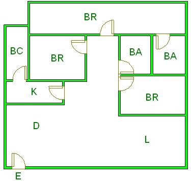 ▲ E(入口)=entrance BR (洋室)=Bedroom BA (浴室)=Bathroom