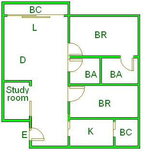 ▲ E(入口)=entrance BR (洋室)=Bedroom BA (浴室)=Bathroom