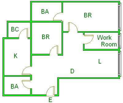 ▲ E(入口)=entrance BR (洋室)=Bedroom BA (浴室)=Bathroom