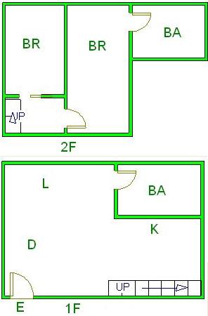 ▲ E(入口)=entrance BR (洋室)=Bedroom BA (浴室)=Bathroom