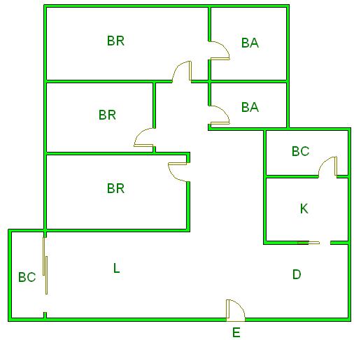 ▲ E(入口)=entrance BR (洋室)=Bedroom BA (浴室)=Bathroom