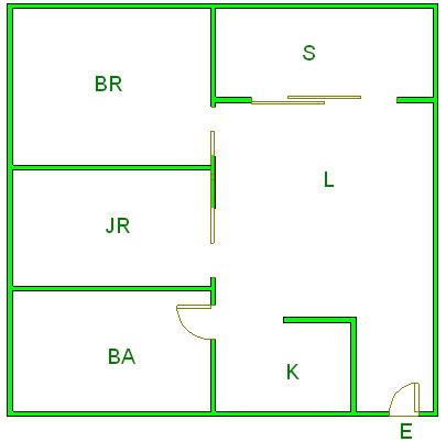 ▲ E(入口)=entrance BR (洋室)=Bedroom BA (浴室)=Bathroom