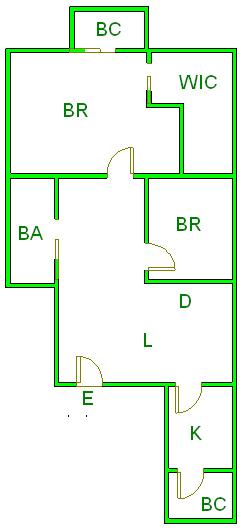 ▲ E(入口)=entrance BR (洋室)=Bedroom BA (浴室)=Bathroom