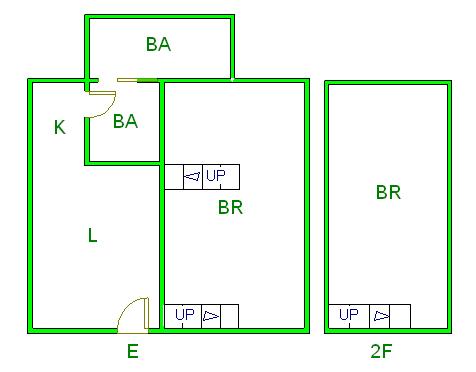 ▲ E(入口)=entrance BR (洋室)=Bedroom BA (浴室)=Bathroom