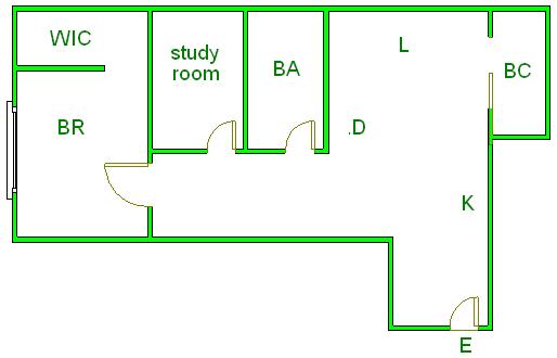 ▲ E(入口)=entrance BR (洋室)=Bedroom BA (浴室)=Bathroom