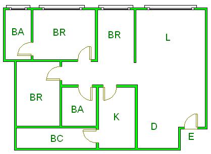 ▲ E(入口)=entrance BR (洋室)=Bedroom BA (浴室)=Bathroom