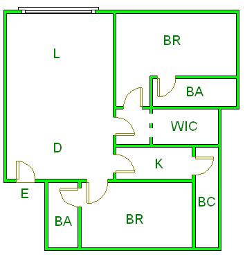 ▲ E(入口)=entrance BR (洋室)=Bedroom BA (浴室)=Bathroom