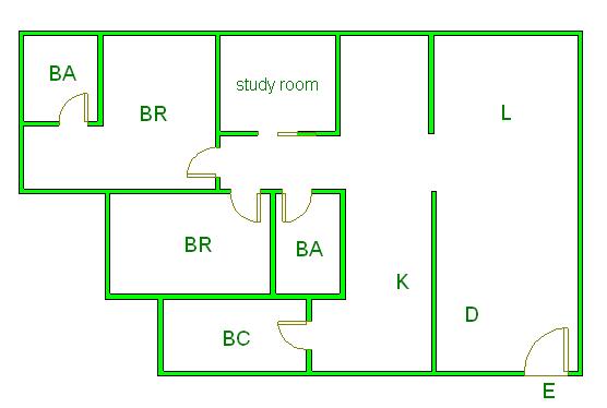 ▲ E(入口)=entrance BR (洋室)=Bedroom BA (浴室)=Bathroom
