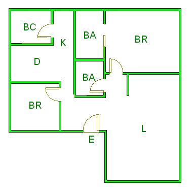 ▲ E(入口)=entrance BR (洋室)=Bedroom BA (浴室)=Bathroom