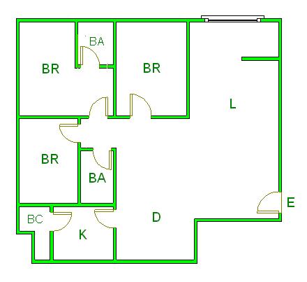 ▲ E(入口)=entrance BR (洋室)=Bedroom BA (浴室)=Bathroom
