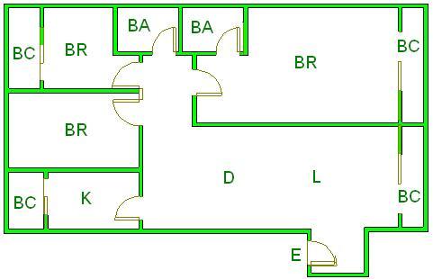 ▲ E(入口)=entrance BR (洋室)=Bedroom BA (浴室)=Bathroom