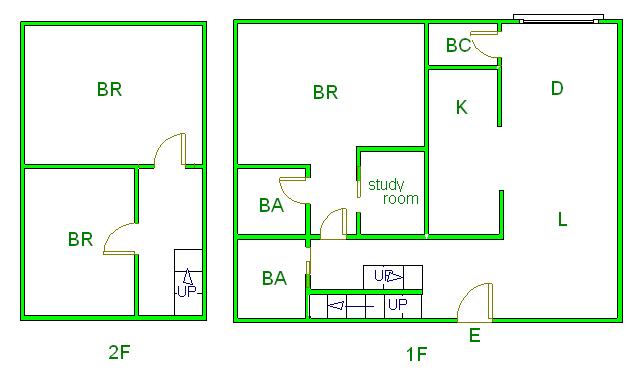 ▲ E(入口)=entrance BR (洋室)=Bedroom BA (浴室)=Bathroom