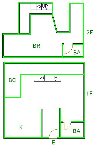 ▲ E(入口)=entrance BR (洋室)=Bedroom BA (浴室)=Bathroom