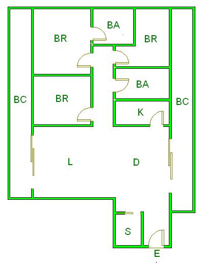 ▲ E(入口)=entrance BR (洋室)=Bedroom BA (浴室)=Bathroom