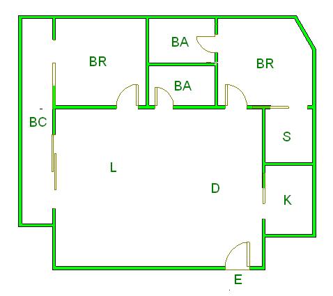 ▲ E(入口)=entrance BR (洋室)=Bedroom BA (浴室)=Bathroom