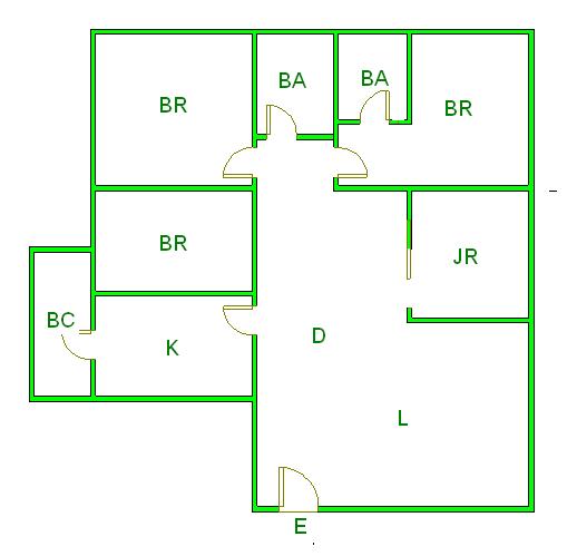 ▲ E(入口)=entrance BR (洋室)=Bedroom BA (浴室)=Bathroom