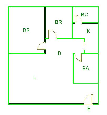 ▲ E(入口)=entrance BR (洋室)=Bedroom BA (浴室)=Bathroom