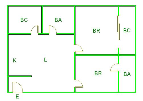 ▲ E(入口)=entrance BR (洋室)=Bedroom BA (浴室)=Bathroom