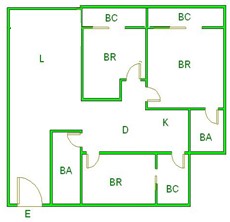 ▲ E(入口)=entrance BR (洋室)=Bedroom BA (浴室)=Bathroom