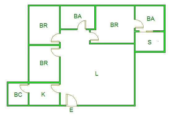 ▲ E(入口)=entrance BR (洋室)=Bedroom BA (浴室)=Bathroom