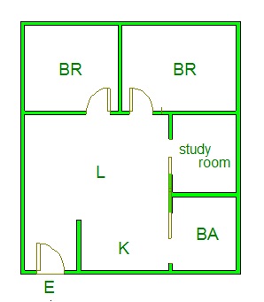 ▲ E(入口)=entrance BR (洋室)=Bedroom BA (浴室)=Bathroom