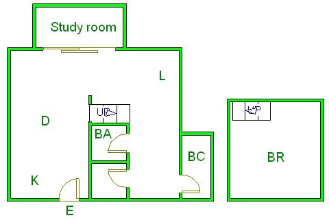 ▲ E(入口)=entrance BR (洋室)=Bedroom BA (浴室)=Bathroom