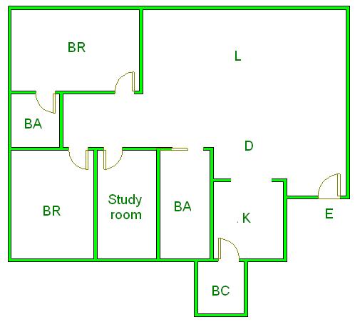 ▲ E(入口)=entrance BR (洋室)=Bedroom BA (浴室)=Bathroom