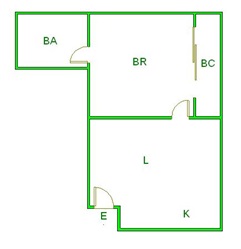 ▲ E(入口)=entrance BR (洋室)=Bedroom BA (浴室)=Bathroom