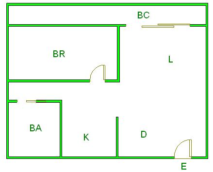 ▲ E(入口)=entrance BR (洋室)=Bedroom BA (浴室)=Bathroom