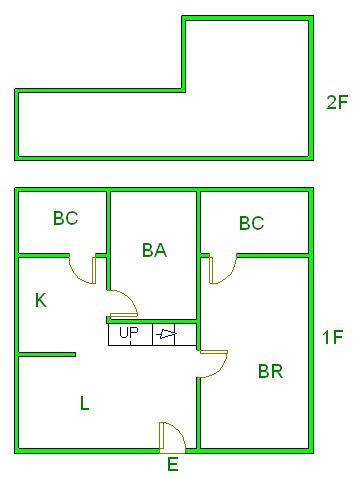 ▲ E(入口)=entrance BR (洋室)=Bedroom BA (浴室)=Bathroom